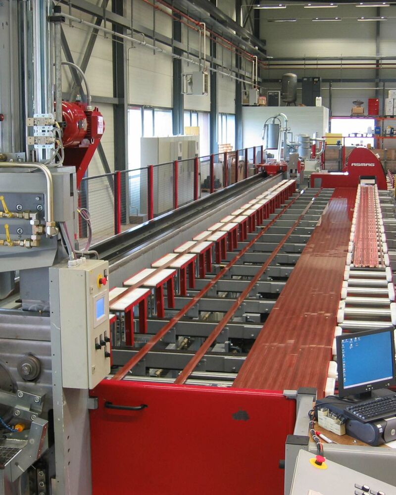 Ein Highlight von ASMAG ist die kombinierte Zieh- und Reckmaschine, bei der der komplette Fertigungsprozess vom Ziehen, Richten, Sägen bis zum Stapeln, Wiegen und Verpacken kosteneffizient auf einer Anlage erfolgt.