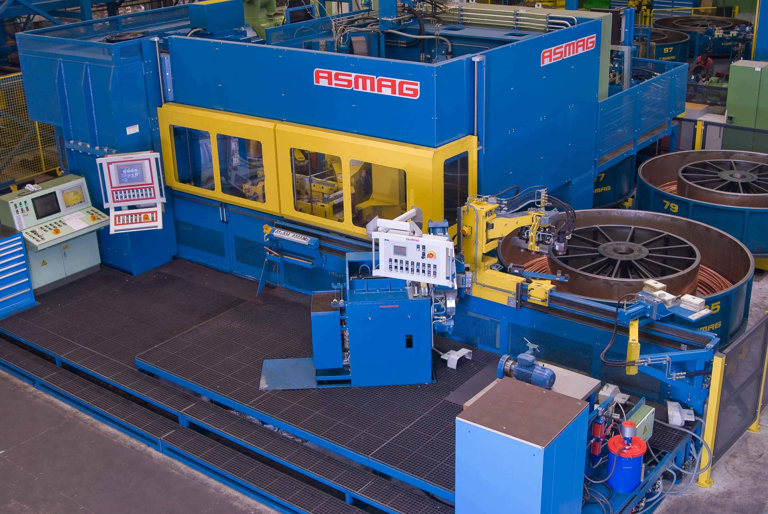 Eine bewährte Technologie als Vorziehmaschine oder als Teil einer Fertigungslinie für die Kupfer- sowie Stahlrohrproduktion stellen die kontinuierlichen Ziehmaschinen von ASMAG dar. Diese können je nach Bedarf für Zwischen- oder Fertigzüge eingesetzt werden. Die Konti-Ziehmaschinen, die nach dem bewährten Zwei-Schlitten-Prinzip arbeiten, wurden von ASMAG komplett überarbeitet. Eine besondere ASMAG-Innovation ist, dass die gesamte Maschine ohne Gussteile auskommt. Beispielsweise sind die hochbelastbaren Kurvenscheiben aus geschmiedetem Stahl gefertigt. Durch die baugleiche Ausführung der beiden Ziehschlitten und die aufgeschraubte Einziehzange vereinfacht sich auch die Ersatzteilhaltung.